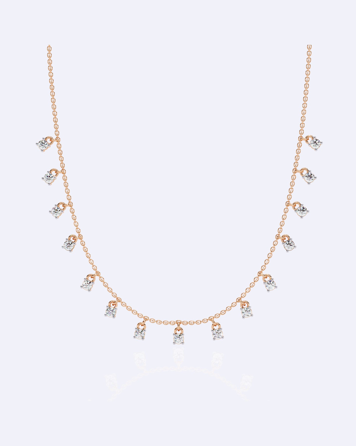 A delicate single ball chain necklace adorned with bezel-set diamonds placed all along the chain, offering a soft, continuous sparkle perfect for everyday elegance.
