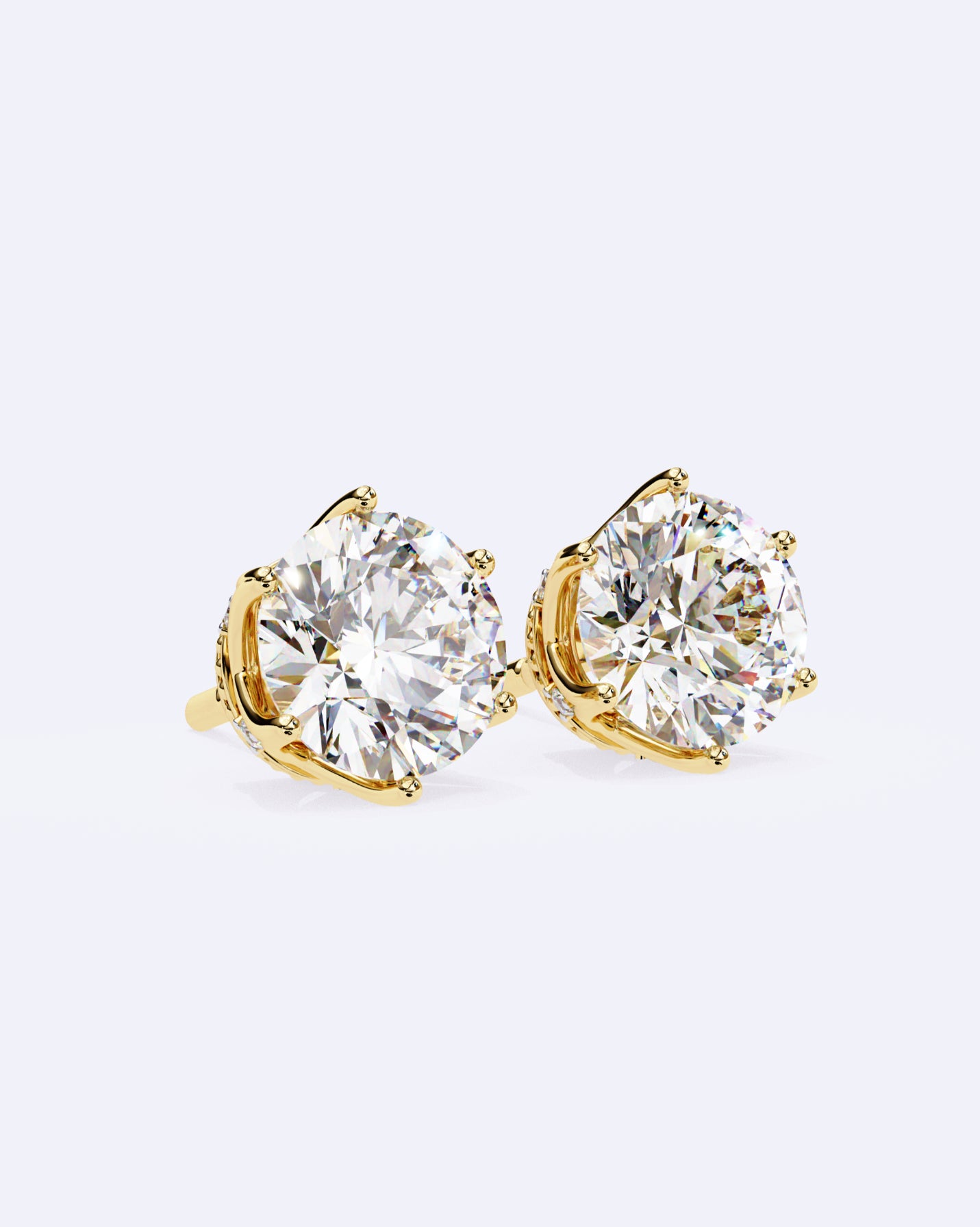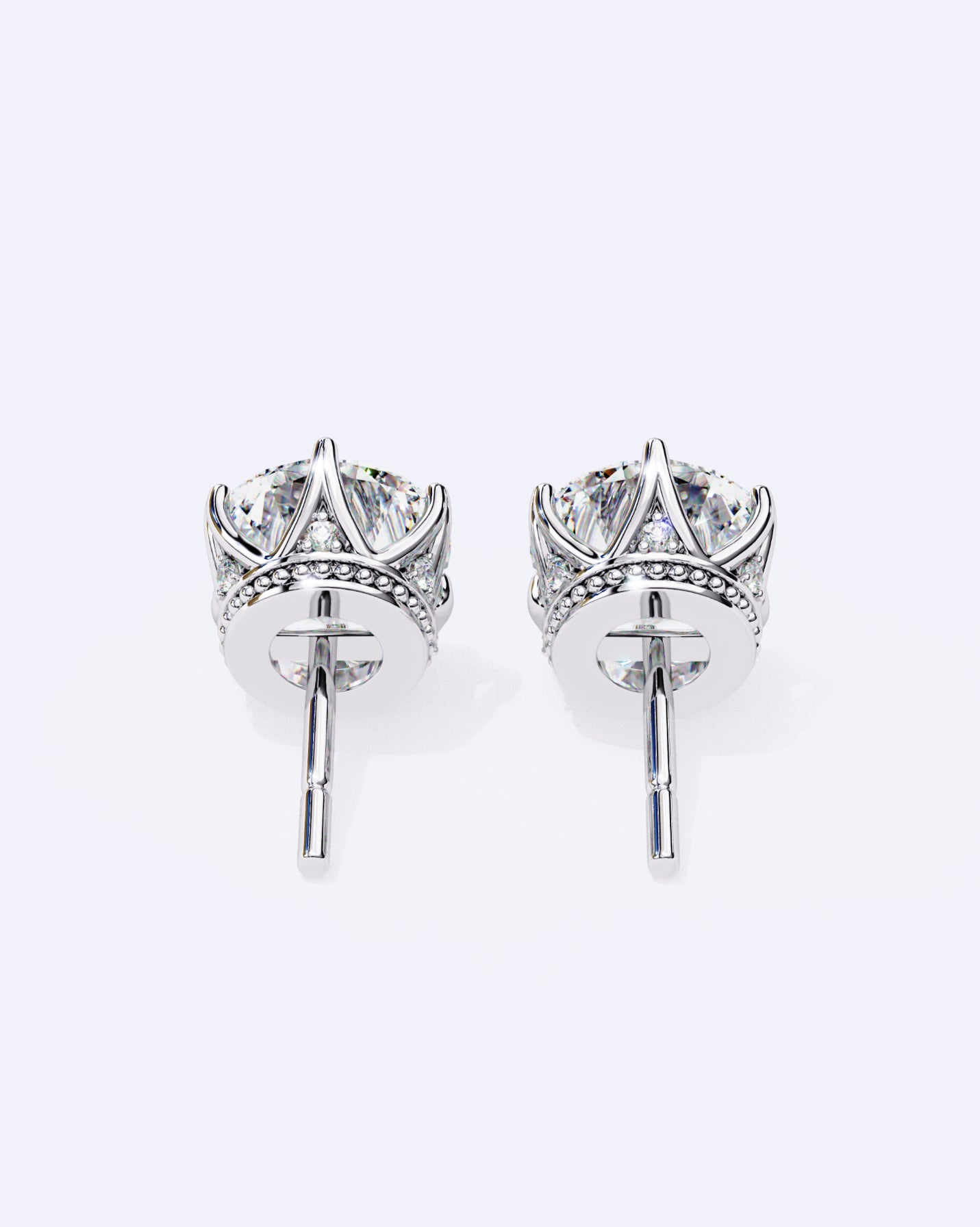 A single brilliant diamond is beautifully elevated in a crown-style setting, adding a touch of regal charm to these elegant earrings. The intricate crown detailing enhances the sparkle, creating a refined piece perfect for both daily wear and special occasions.