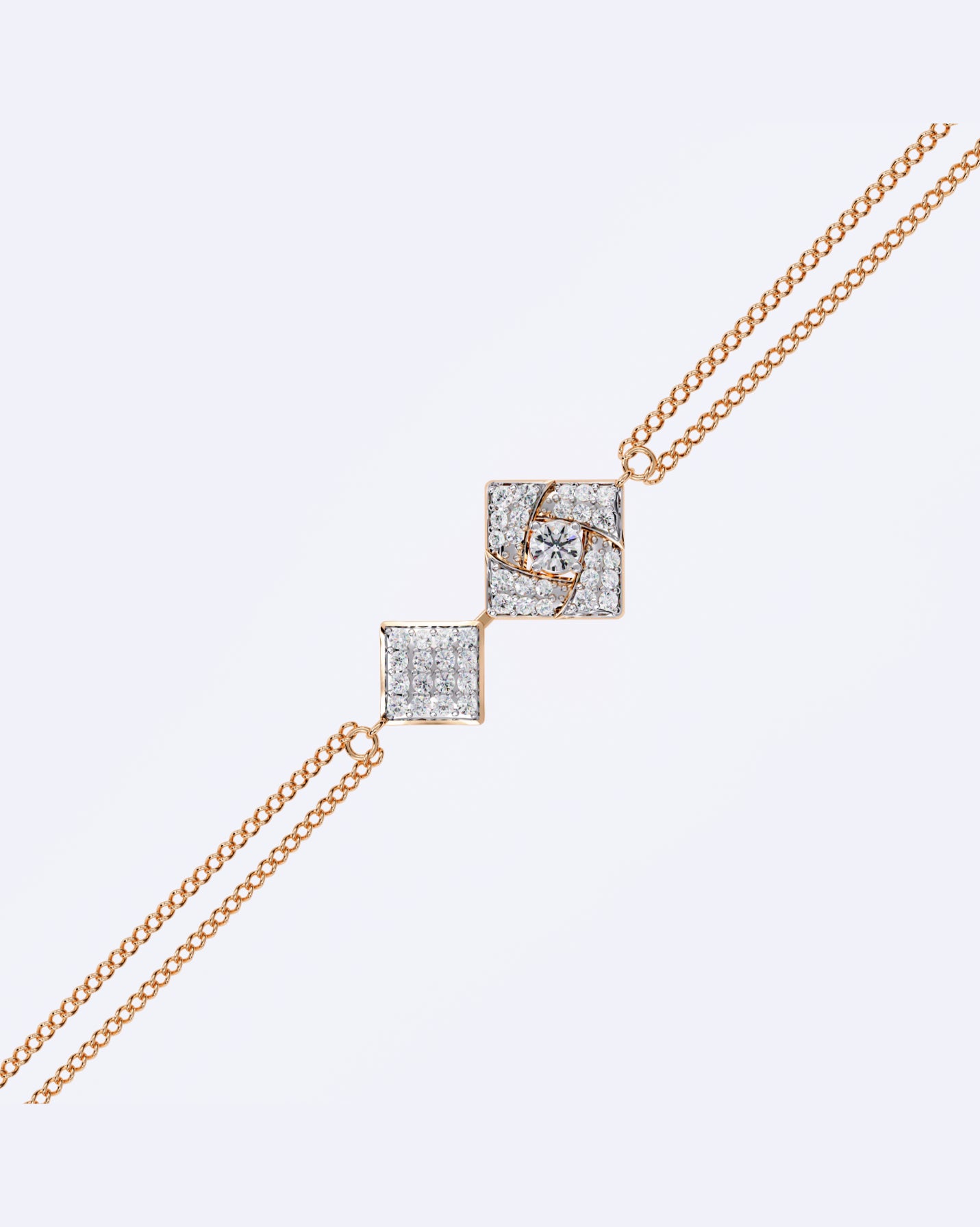 Inspired by modern geometry, this bracelet features clean lines and diamond-studded patterns that reflect perfect symmetry and shine.