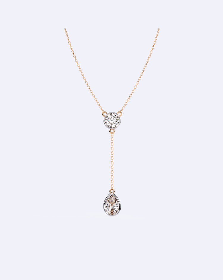 A sleek chain pendant featuring a classic round diamond on top, beautifully finished with a pear-shaped diamond drop for a refined, elongated sparkle.