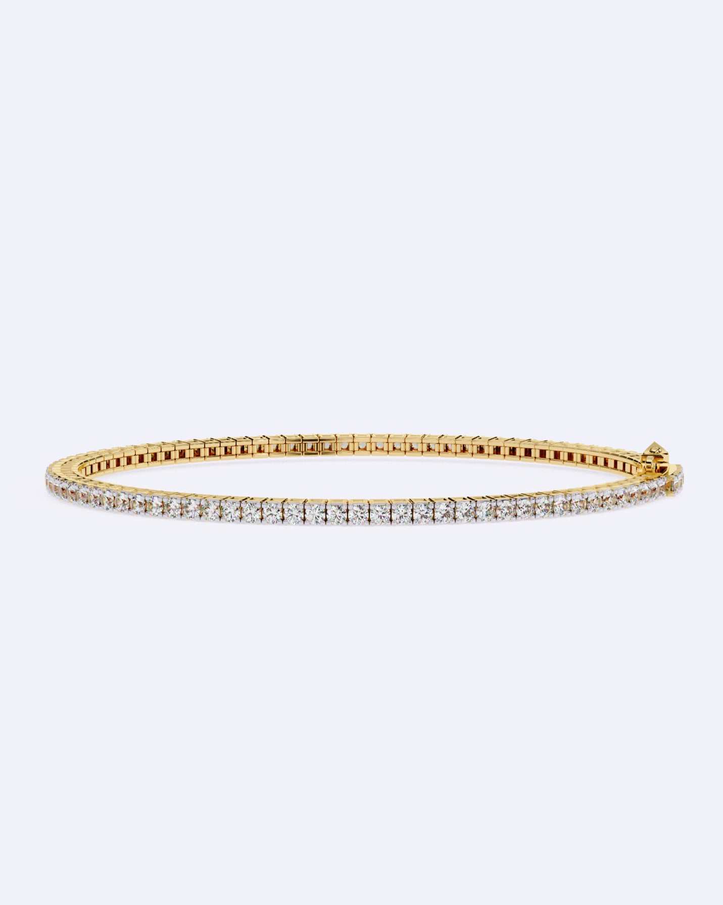A sleek row of brilliantly set diamonds creates a seamless flow of light in this tennis bracelet, celebrated for its classic beauty and refined sophistication. Designed to drape gracefully on the wrist, it brings effortless shine to any look.