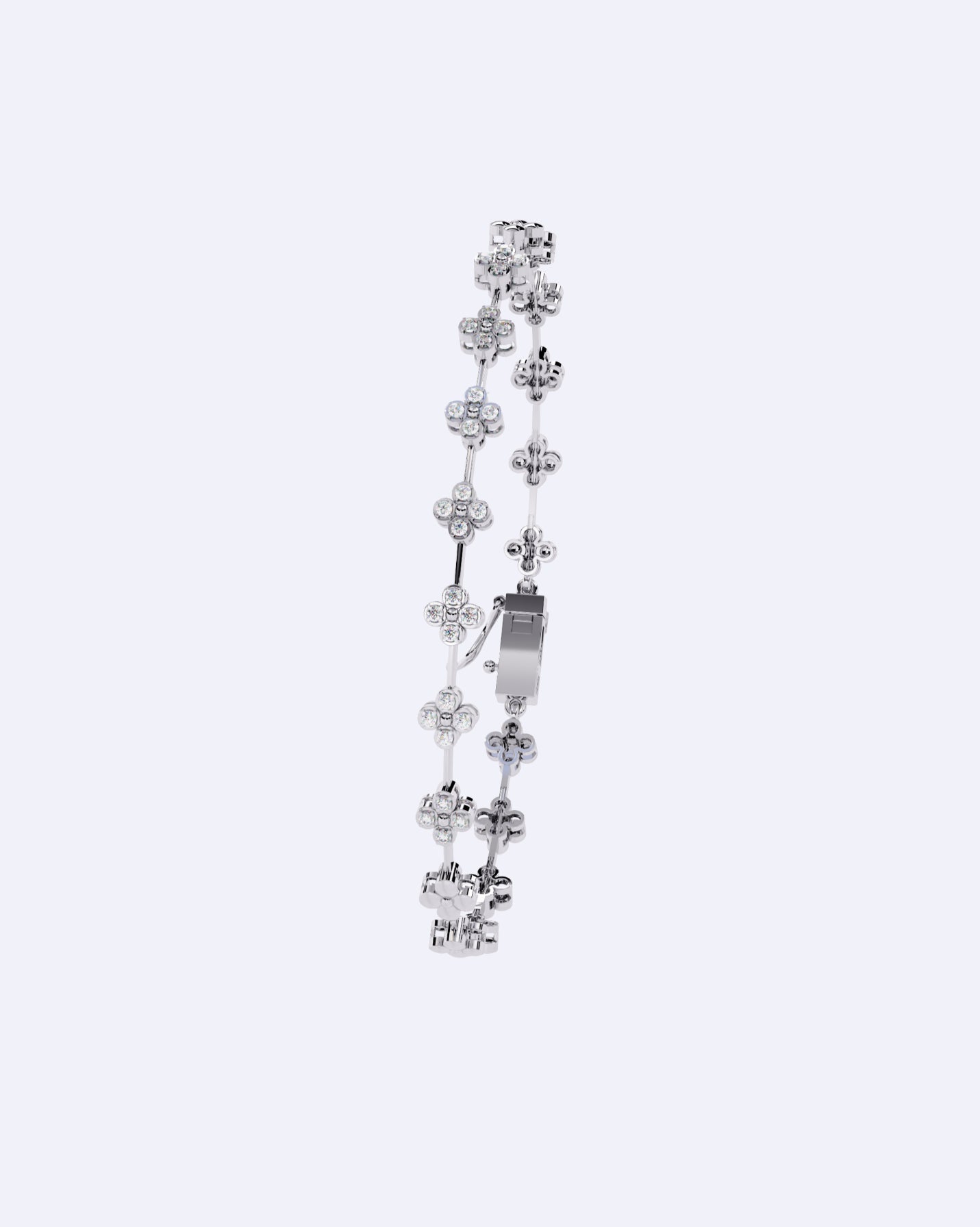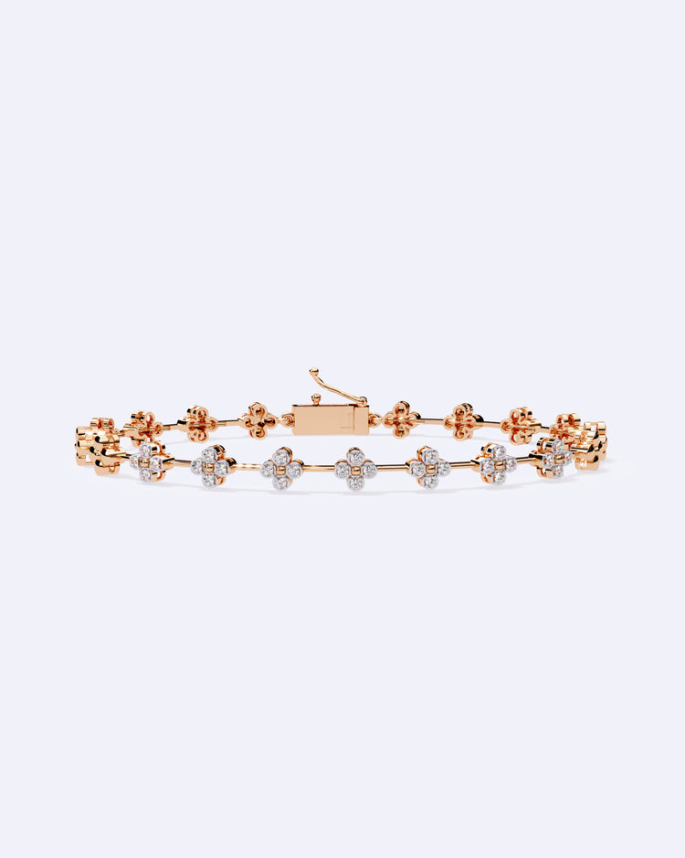 Graceful and timeless — this bracelet features a symmetric floral motif, delicately studded with shimmering diamonds that capture the beauty of nature in perfect balance.