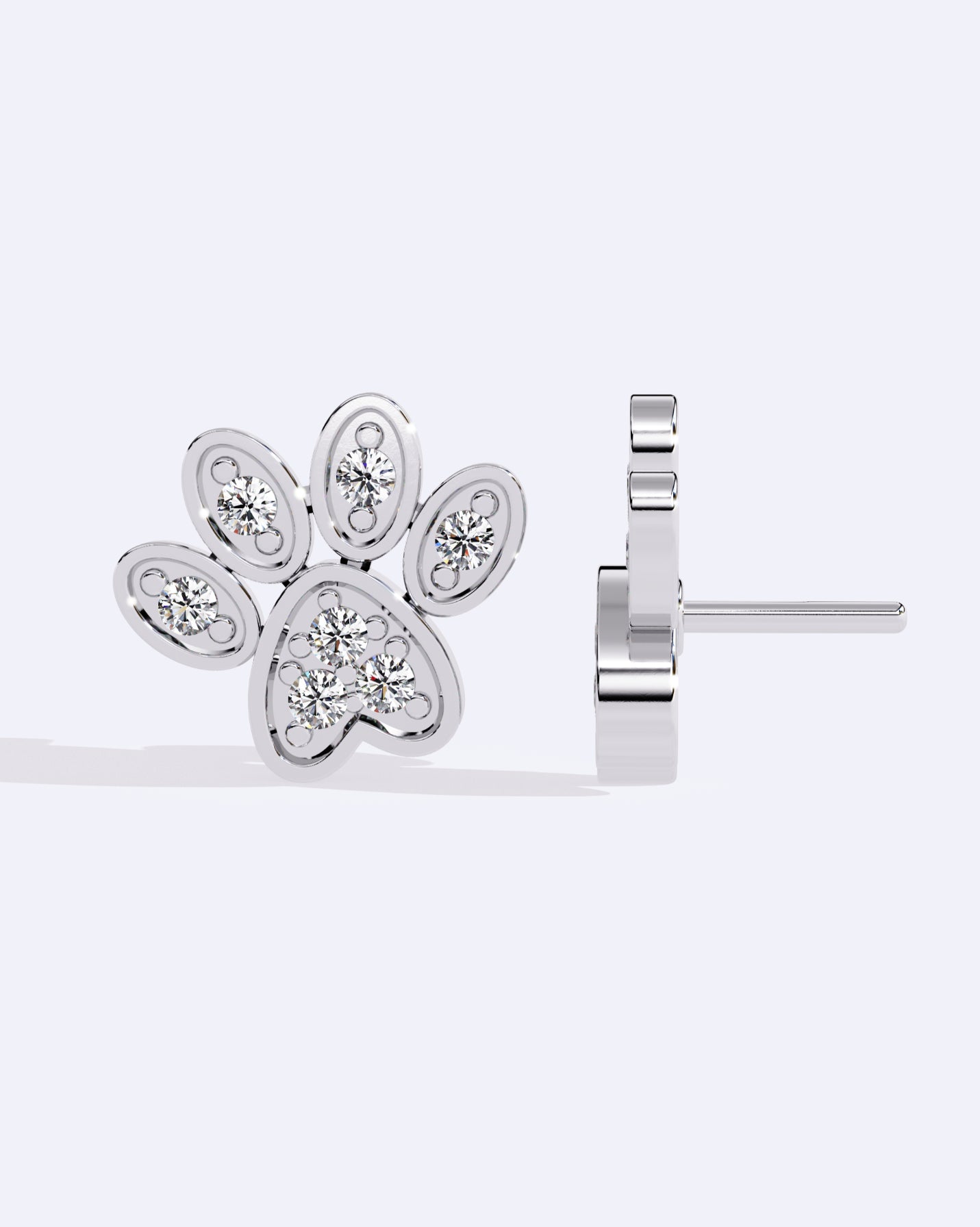 Charming paw-shaped studs delicately studded with diamonds, perfect for animal lovers with a playful, sparkling touch.