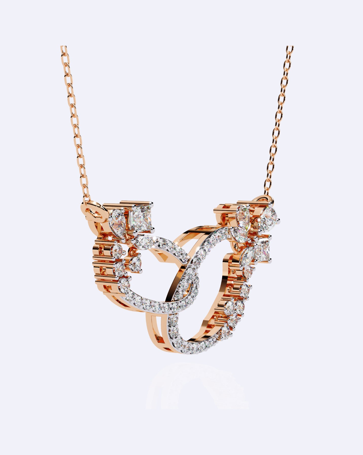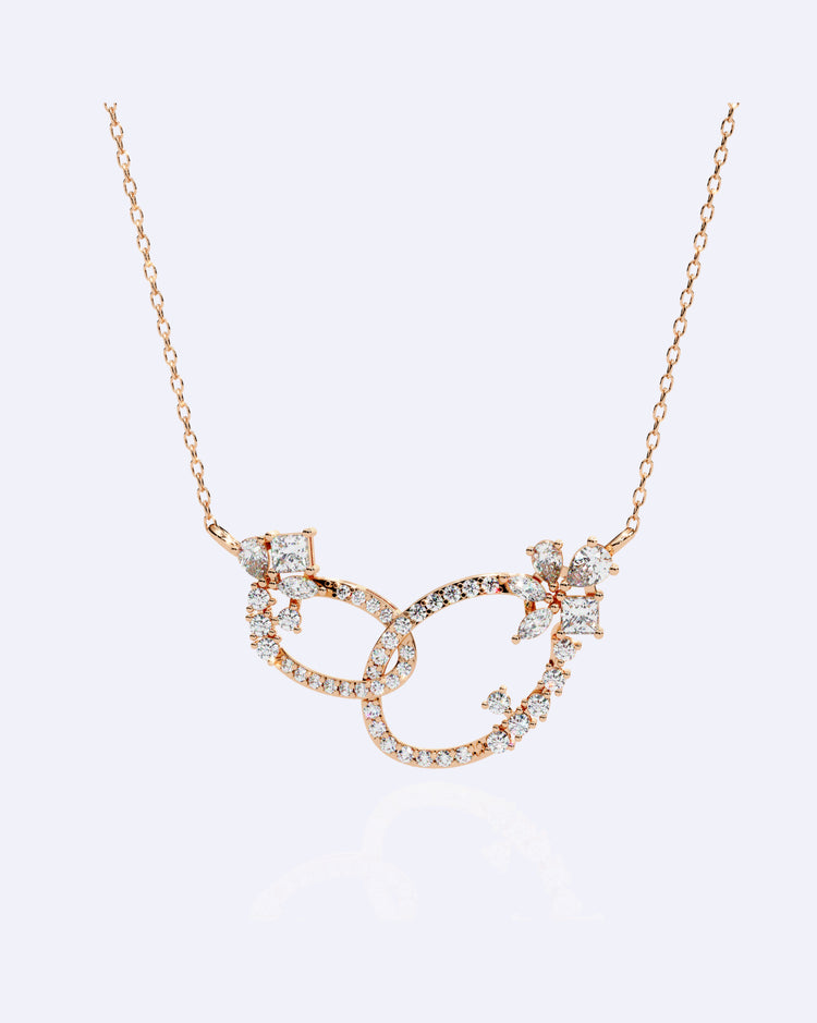 A refined pendant featuring interlined oval motifs beautifully studded with diamonds, creating a graceful, flowing design that shines with modern elegance.