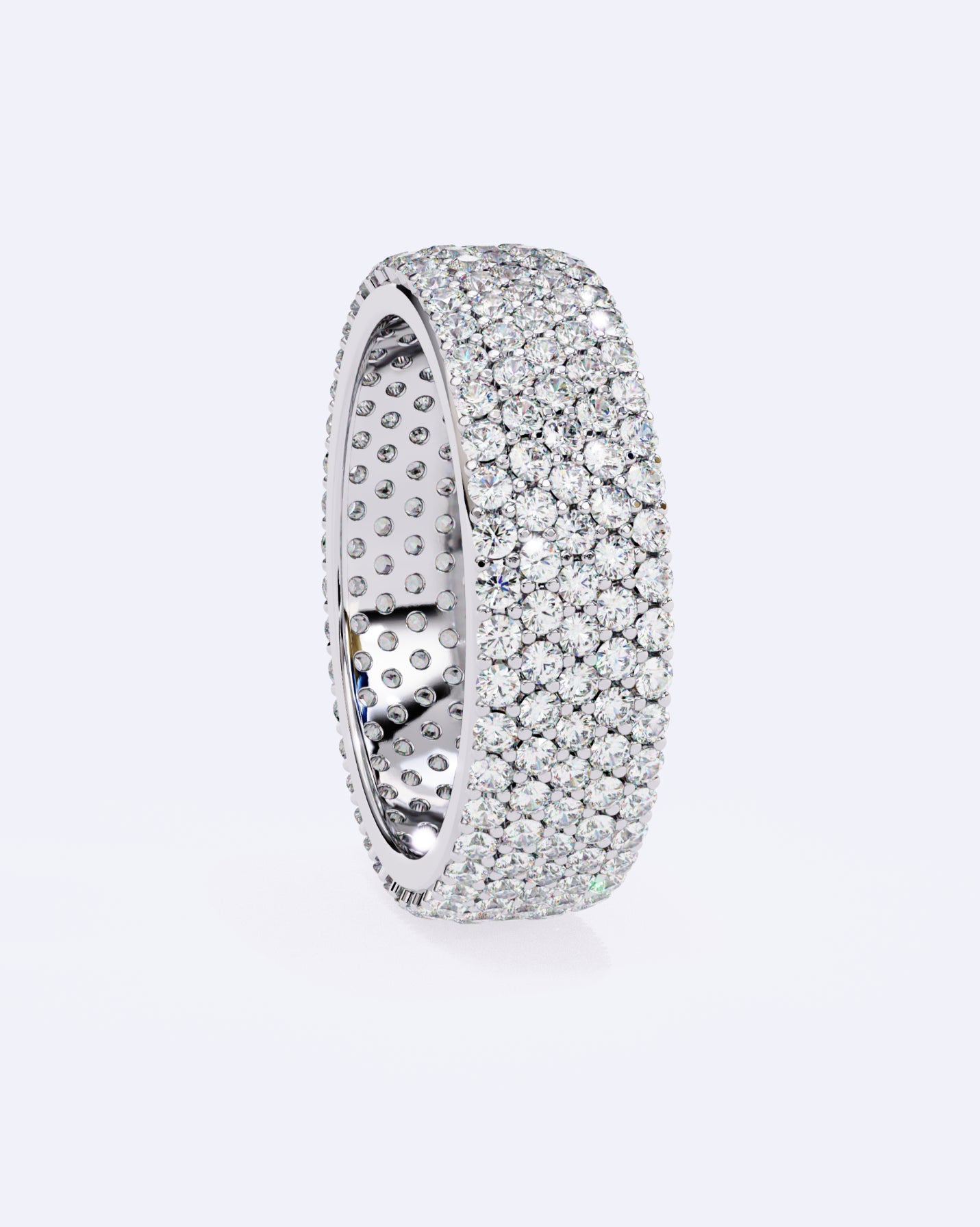 A chic broad band meticulously set with rows of petite diamonds, creating a structured sparkle and a bold yet refined look perfect for those who love elegance with a touch of statement.