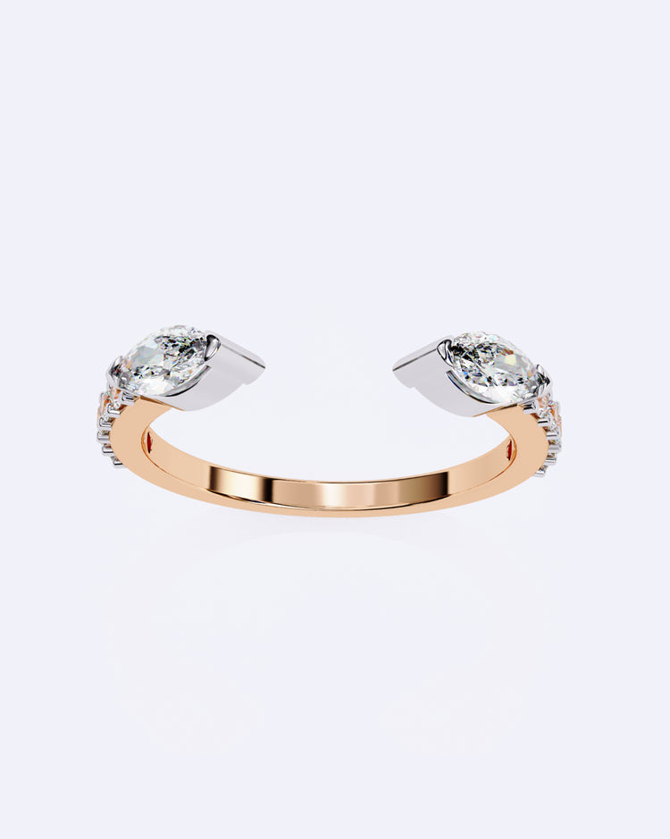 A graceful open ring featuring a striking marquise diamond at the opening, complemented by a trail of sparkling petite diamonds along the band — a perfect blend of elegance and modern charm.