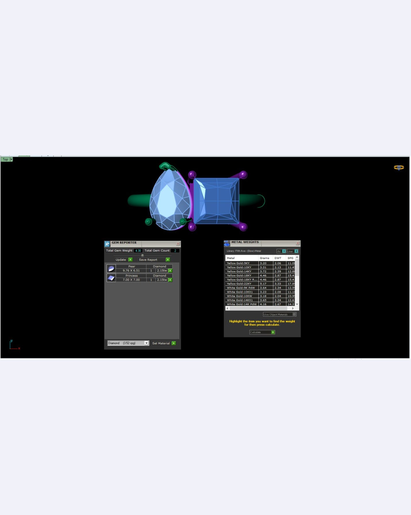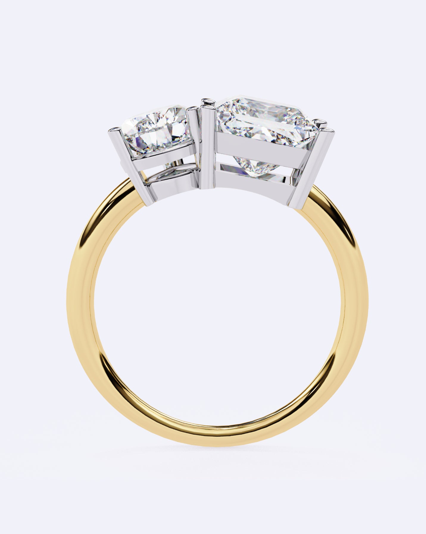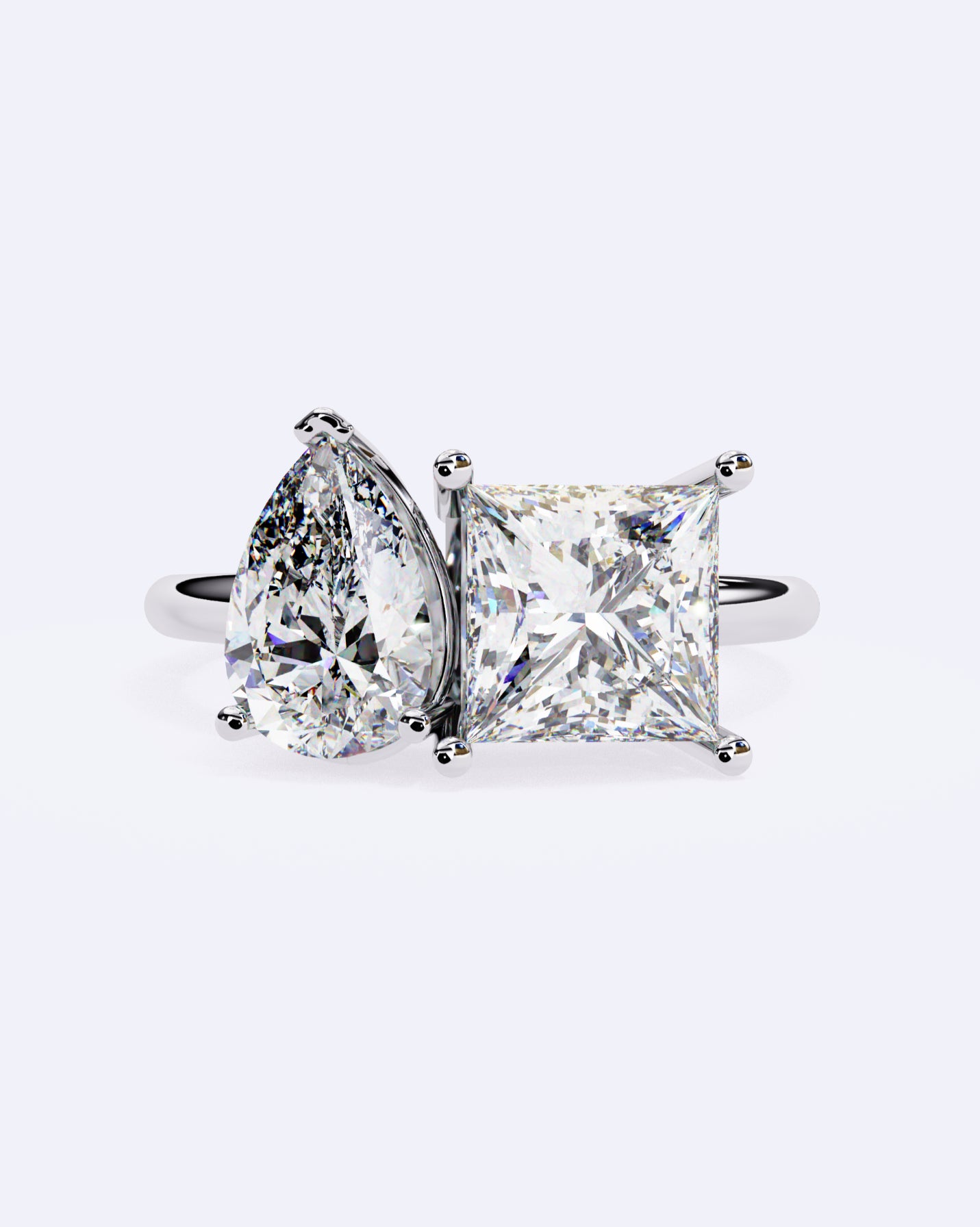 A striking interplay of shapes a graceful pear diamond paired with a bold princess-cut solitaire creating a distinctive expression of modern elegance. Two unique silhouettes, united in perfect harmony.