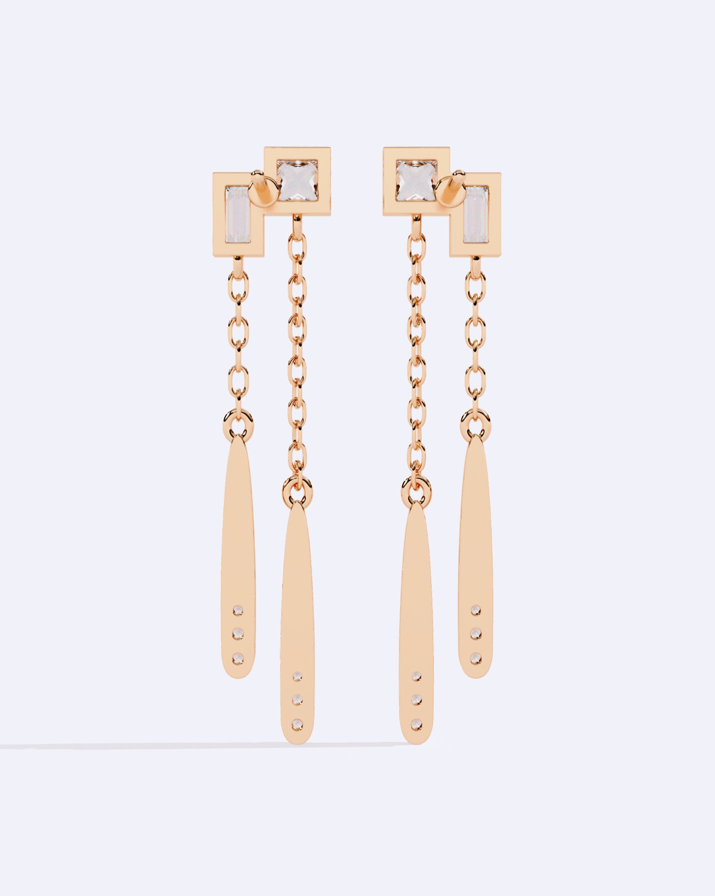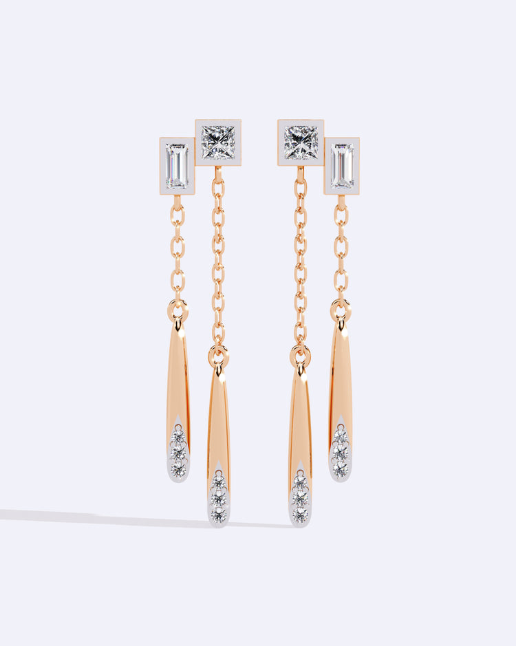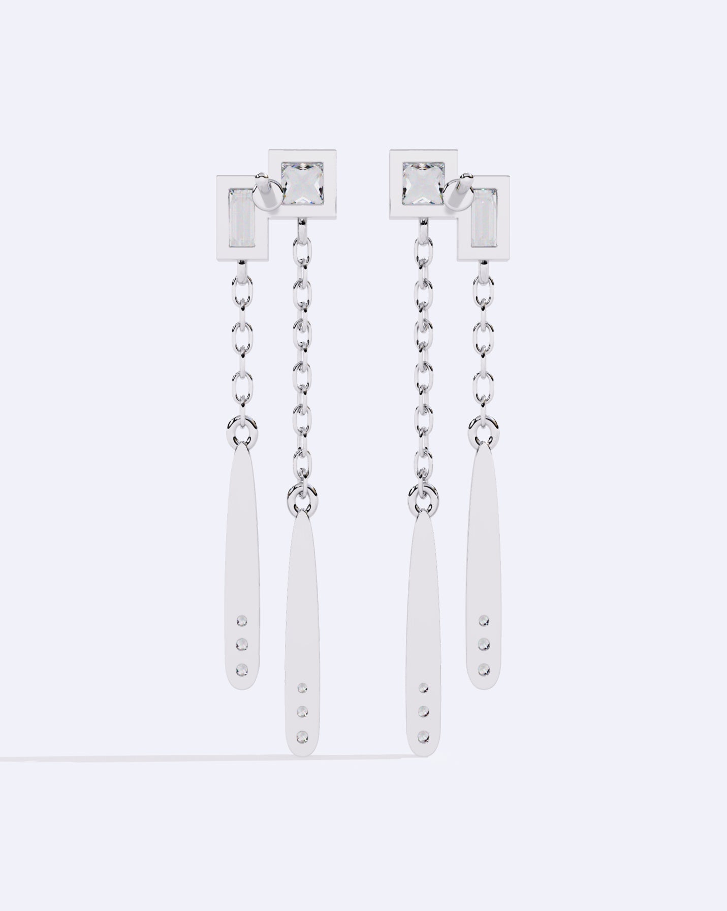 Sleek chain drops accented with square-cut diamonds, creating graceful movement and modern sparkle.