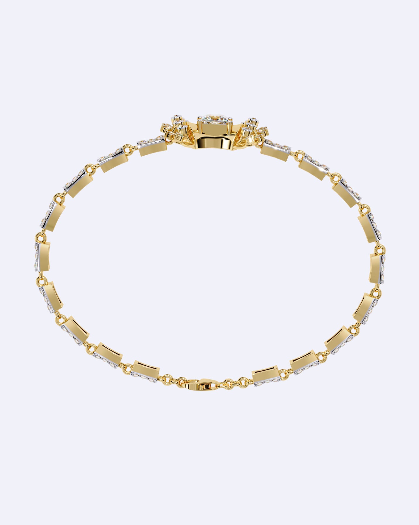 A bold expression of modern sophistication this bracelet showcases contemporary design lines adorned with brilliantly set diamonds, blending minimal geometry with radiant sparkle.