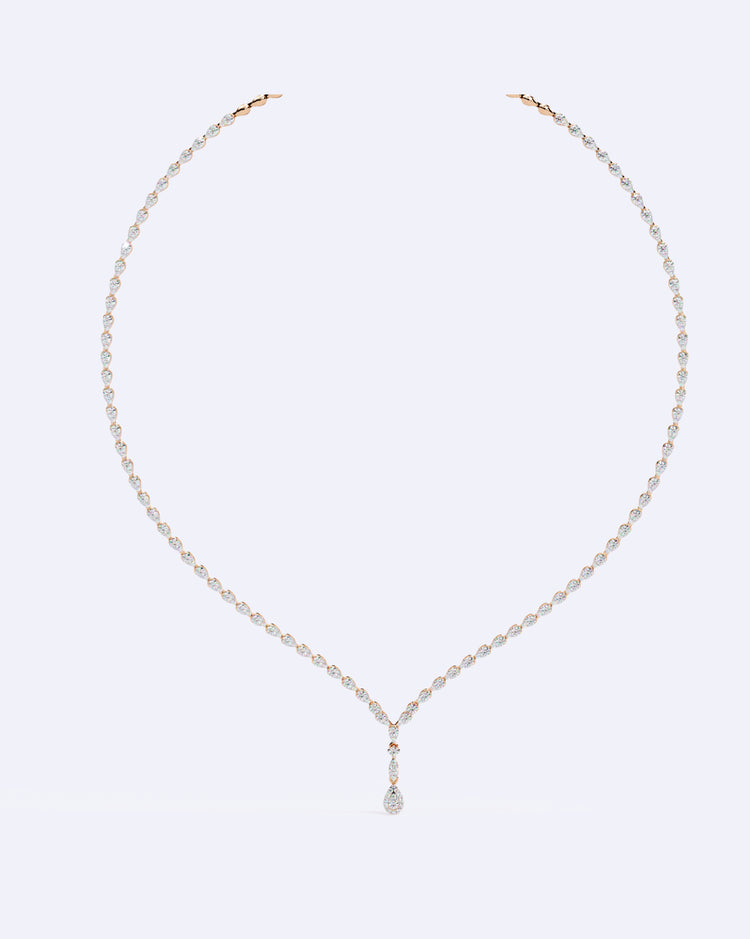 A refined single-line diamond necklace featuring perfectly aligned diamonds, finished with a delicate diamond drop that adds graceful movement and timeless sparkle.