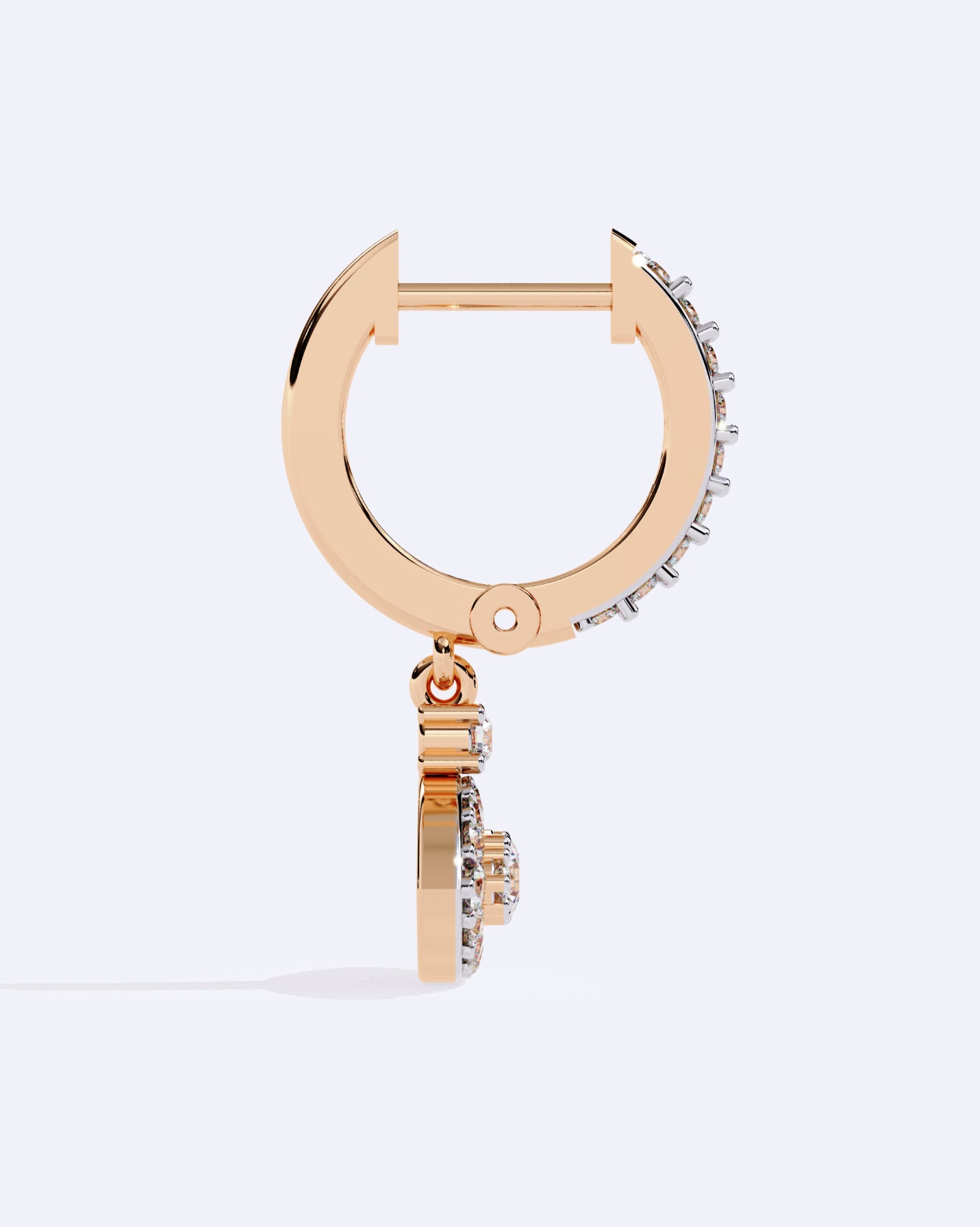 he perfect balance of a refined hoop and a dangling solitaire diamond for timeless sophistication.