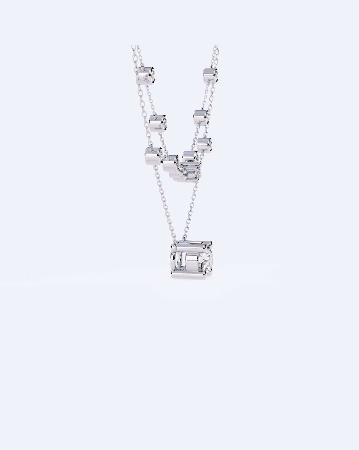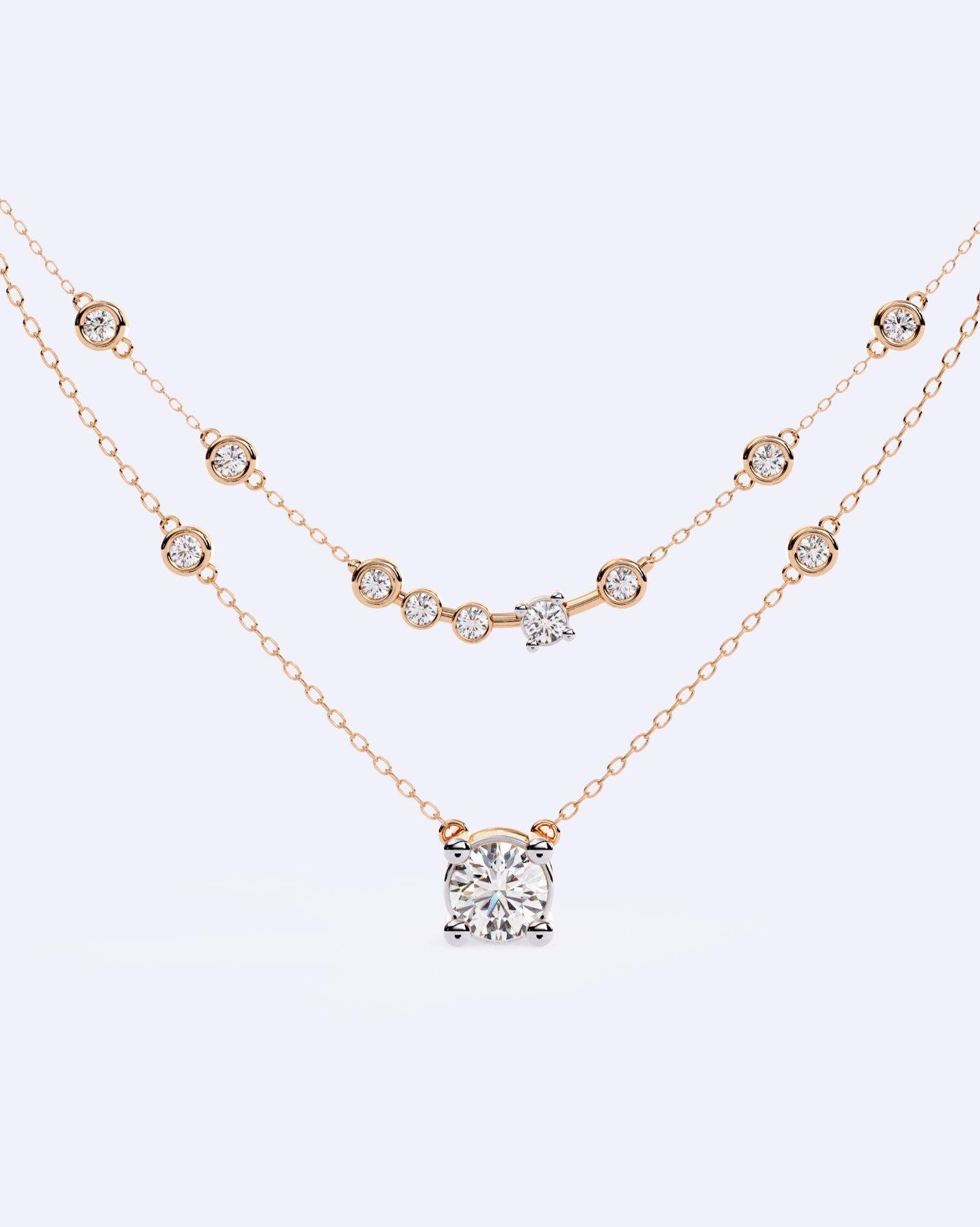A sleek two-line chain necklace adorned with bezel-set solitaire diamonds, offering a refined sparkle and a beautifully structured layered look.